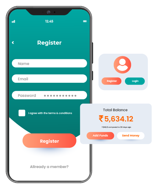 Register with personal and business details. - Login Process